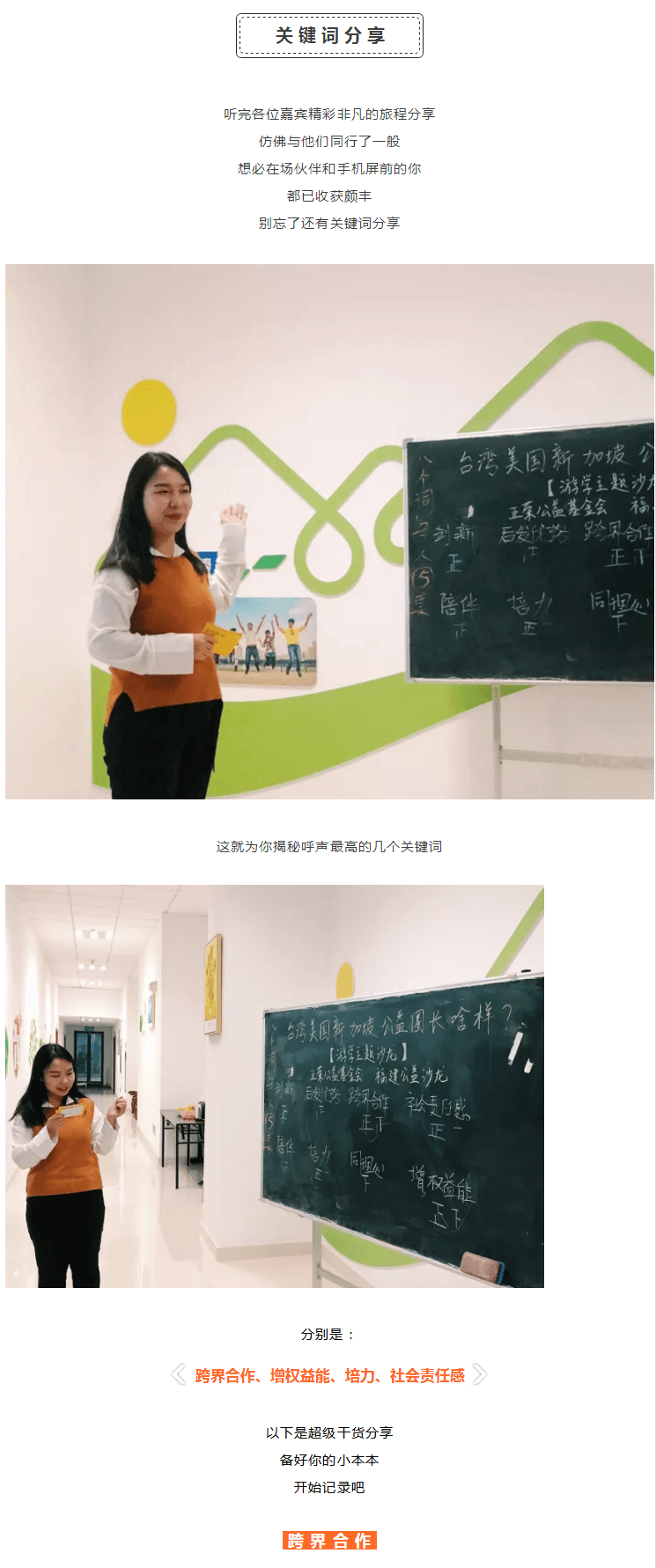 “要注意其他行业的发展,主动与其他行业合作,作为公益组织, 更要有开放的心态与其他行业合作。 不合作,就等着被颠覆。”