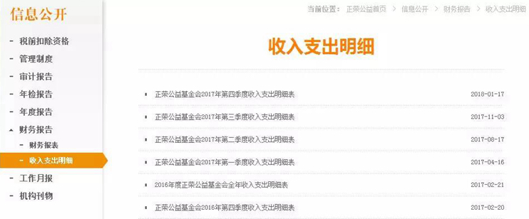 而公开透明则被正荣公益基金会视为最基本的、必须实现的工作。徐婧说,基金会的官网就是一个公开的后台资料库,除了披露各种机构信息、项目信息和年度报告外,还会实时更新机构动态、项目进展,并设置了搜索栏以便搜索信息,满足捐款人及普通大众对基金会和项目透明的需求。“我们现在还要求每一个项目,在项目立项和项目结项时,要先将相关材料上传网站公示,完成这个步骤后才能进行拨款。”