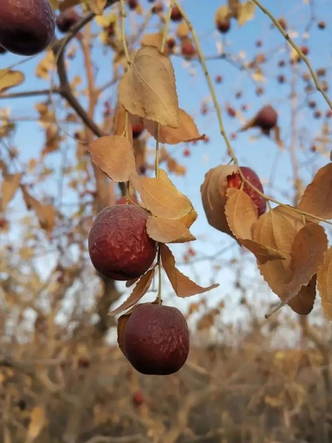 酥脆香甜的冬月吊干枣片。满分红枣产自新疆和田的古德自然农场。在和田,由于气候极度干燥,空气湿度低于13%,把枣留在树上,就可以自然晾干,俗称“吊干”。每年立冬前后,枣子基本吊干,这样的红枣没湿气,甜度高,大家叫它“冬月吊干枣”。