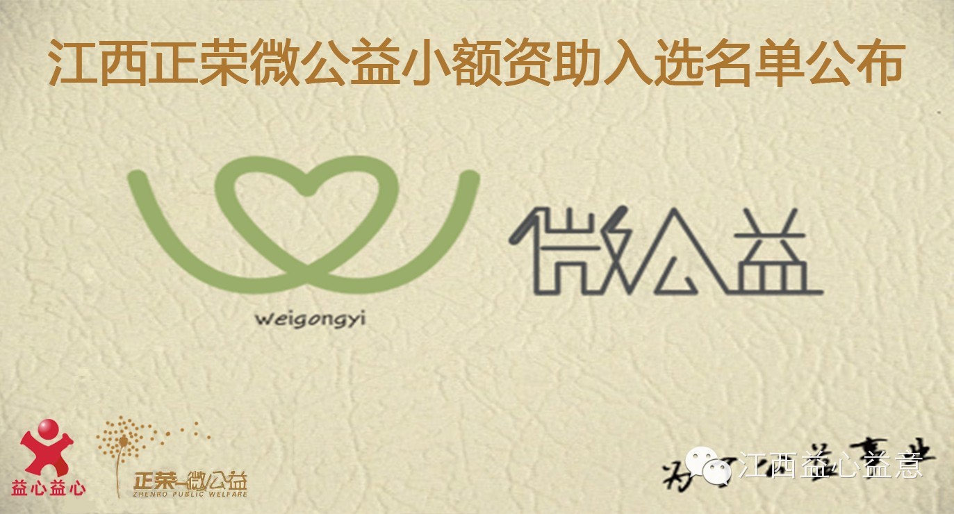 2014年9月,正荣公益基金会和南昌益心益意公益服务中心联合发起“江西正荣微公益小额资助项目”。项目主要为江西本土草根公益力量提供两方面的支持:一是对本土公益组织和个人提供资金与技术支持,催生公益组织和公益服务;二是对具有创新性和社会影响力的公益项目给予支持,鼓励公益组织大胆实践创新,以此推动江西公益朝多元化、专业化和可持续性方向发展。