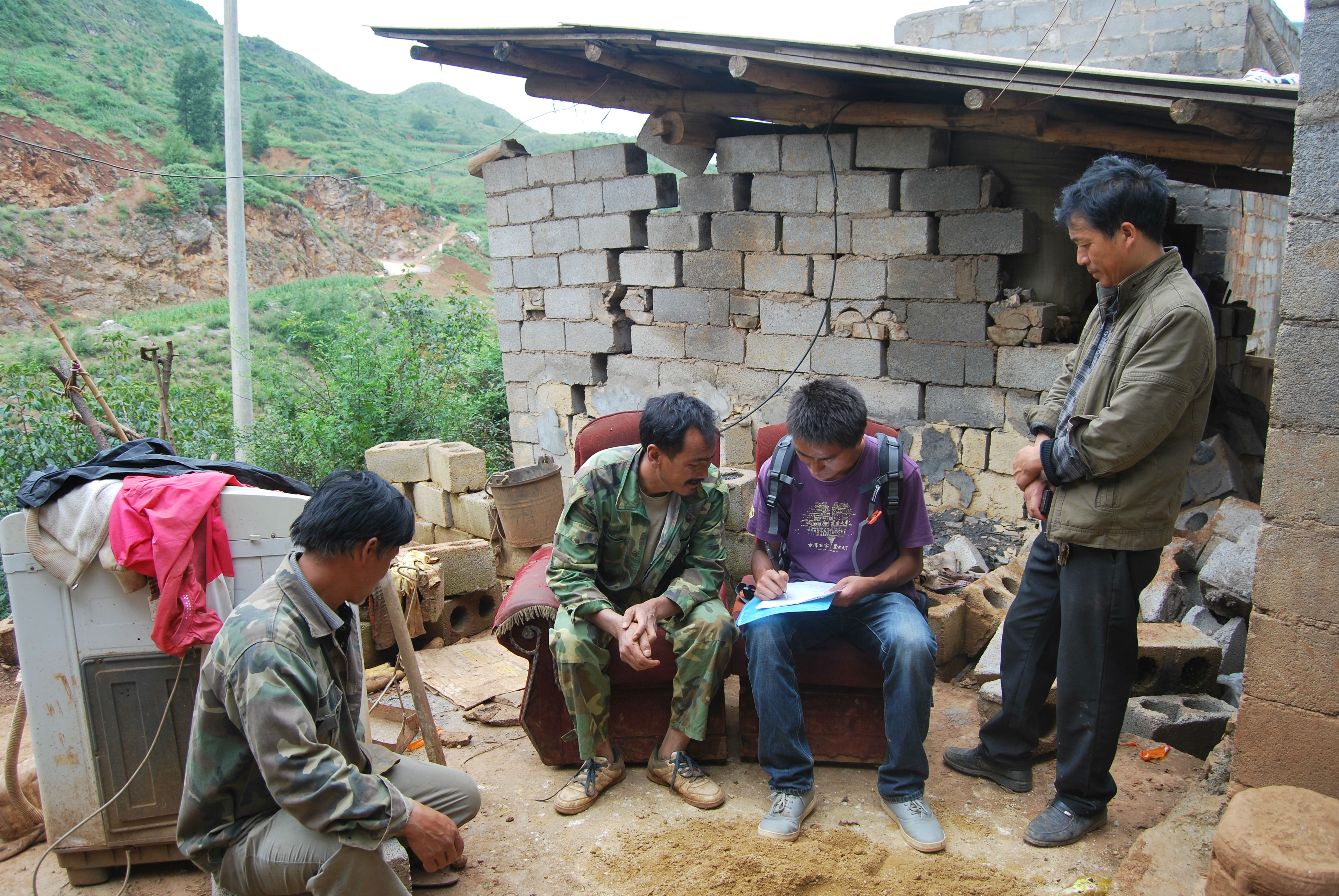 4.20雅安地震使竹国春遭受重创,他辛辛苦苦建起的养猪场被夷为平地,直接经济损失达3万多元。地震之后,竹国春和家人一起将猪圈里的碎砖和石块进行了整理。可是几万元修建猪圈的费用难住了这个四川汉子。和竹国春一样,同样的问题摆在横溪村村民面前。地震之前横溪村的收入主要是依靠土地种植业。而地震以及引发的次生灾害,掩埋了村民们大部分的土地,根本不可能在短期内整理恢复,对于灾民们来说,在地震之后如何维持生活,“吃饭”则成了大问题。