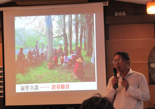 图5 新故乡文教基金会董事长、纸教堂掌门人廖嘉展先生介绍社区建设