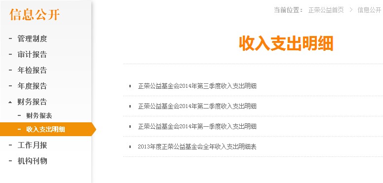 正荣公益基金会秘书长助理徐婧表示,基金会从成立伊始就非常注重机构公信力的建设。在信息公开化上,基金会通过官方网站和微博,实时公开机构的管理制度、审计报告、年检报告、年度报告、财务报告、捐赠情况等信息,同时还编制和发布工作月报,具体披露每月的机构动态和项目动态,此外还会定向地向捐赠方反馈捐赠款使用情况及项目进展。在财务透明化上,基金会除了公布财务报告、财务报表外,还编制和公布季度收入支出明细表,详细披露每季度机构的每一项收入和支出情况,让非财务专业的公众也能轻松地看懂基金会每一笔收入的来源和支出的去向,而财务制单制表的过程也透明化,会让财务人员对其进行拍照,确保零错漏、零缺失。