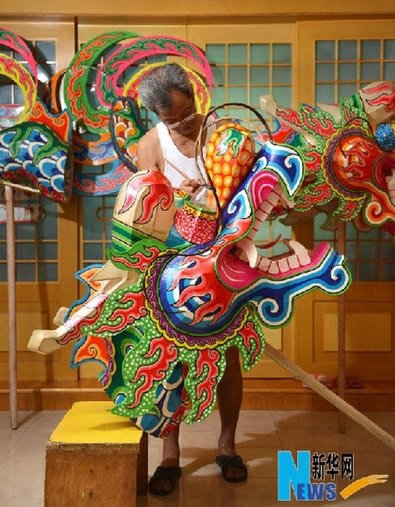 “郑师傅在制作舞龙灯(刘丰 摄)