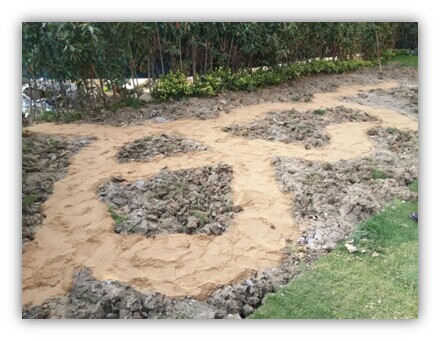 池塘之后,又一力作!——规划路面道路ing,猜猜是用什么画的小路标记?答曰:面粉~