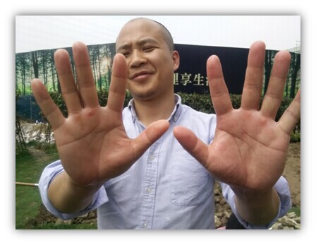 万事开头难,一铲子下去,泥土只动了一小块,但是军军“说到做到”!结果奋战的收获是手掌上的巨型水泡!