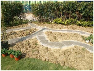 大家合力开垦的小菜园上一条钥匙型的小路映入眼帘。没错,这是我们的菜园小路,用我们的双手创造的一条路。