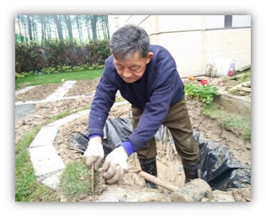 军军,里纯,秋华,阿米,还有我们的“女汉子”雨秋,另外加上我们敬爱的爷爷。一个临时铺路团成立了。