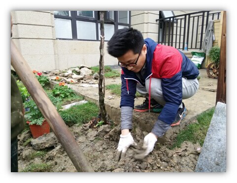 上午的时光总是那么短暂,我们迎来了三个志愿者,别看是女生,他们也是挖地的一把好手。即使工程依然艰辛,但快乐与我们同在!