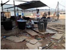 图1 难民营厨房卫生条件堪忧图 2 难民营唯一一套净水设备图 3新难民安置点水源