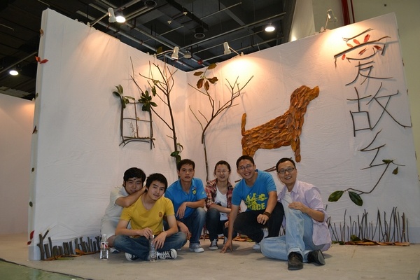 小小创意,LOGO中的狗是用树叶拼的。爱故乡几个字是用树枝拼写的。感谢来自中国计量学院的志愿者:
