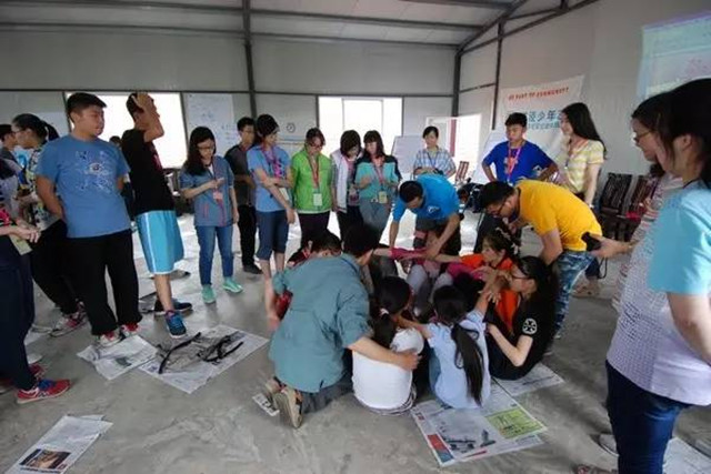 7月9日上午,小志们继续在三位培训师的带领下,进行服务学习课程的学习,以及开展团队活动。“信心起立”和“风中柳”两个活动,让小志们体会到信任自己的队友,依靠团队的力量共同完成任务。两天半的营地集中训练,让每支少年志小队都凝结成了紧密的团体。由于活动场地空间限制,大家时不时就要席地而坐,克服“黑裤子变成白裤子,圆屁股变成方屁股”的艰苦环境。