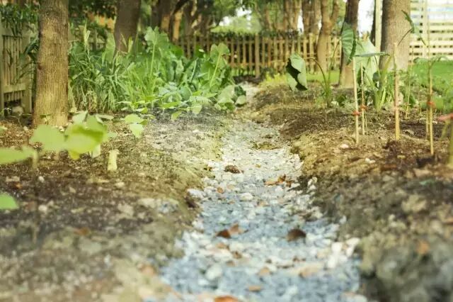 家庭种植有别于蔬菜批量生产,农园本身的土地容易板结,开垦小分队尝试着加入了落叶、沙粒、生物肥、有机质,甚至还培养了4斤蚯蚓,就是为了增加肥力和透气性,让土壤松动起来。泥土中间铺上碎石,不仅是为了行走,更是为了加速排涝。
