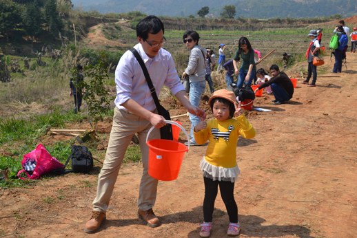 从3月8号开始,农场就开始安排市民朋友们来到农场一起参与植树添绿了。从8号到10号,共有300多号人来到农场种下来将近300课的小树苗。这几场植树活动得到了省林业厅、省环保志愿者协会和团市委的大力支持,团市委给故乡农园捐赠了200棵的桂花树、省林业厅的团支部给农园到来了100棵的桂花树和一台彩色激光打印机。同时植树的消息一发布出去就得到了社会各路团体和企业的报名参与。福州华德福学校的老师们带着孩子与家长一起来到农园,将种下的树苗设计成一个地球的样子。他们希冀地球的生态可以得到越来越多的人一起参与保护。