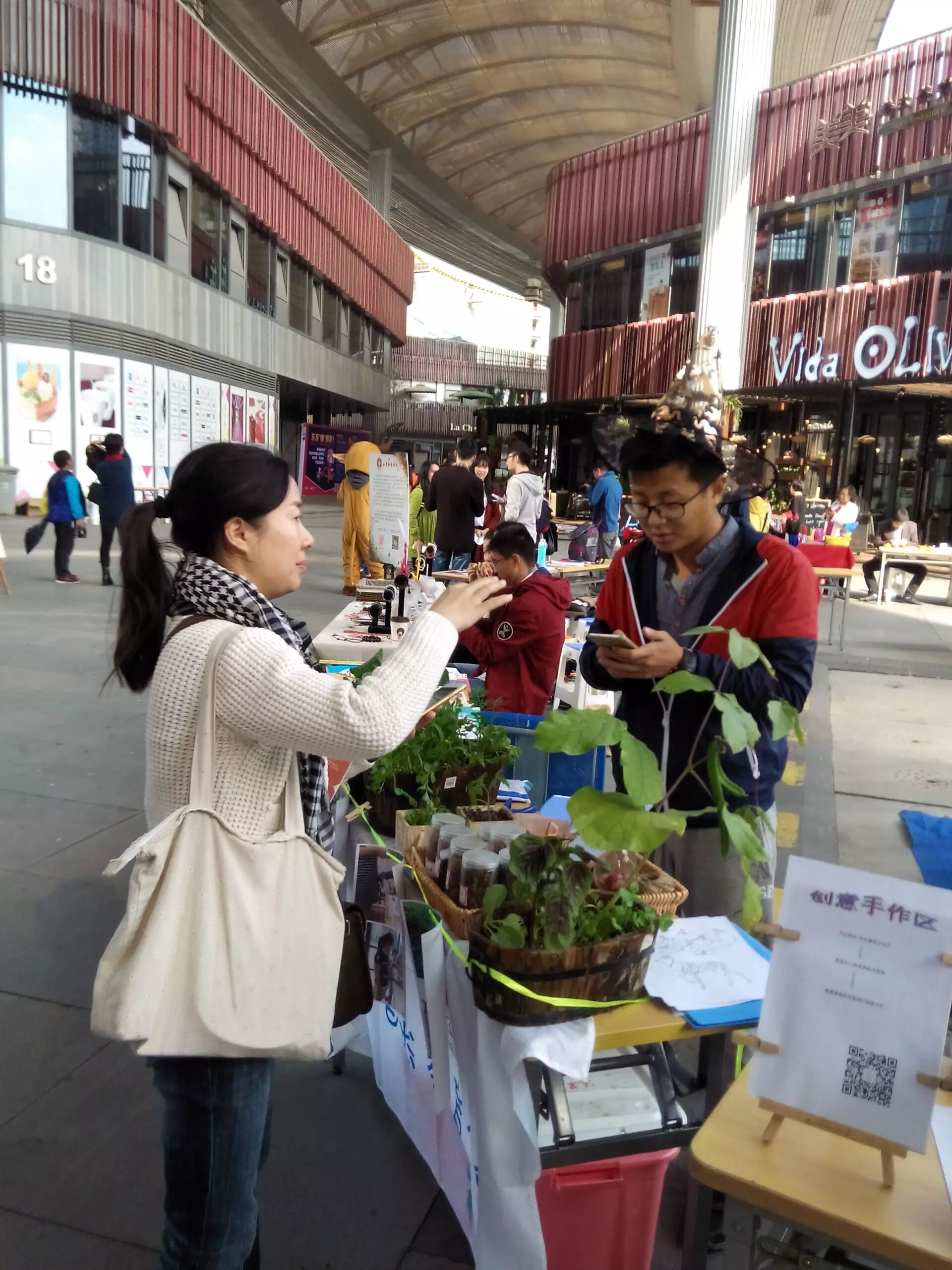 你好 社区的摊位真是络绎不绝啊