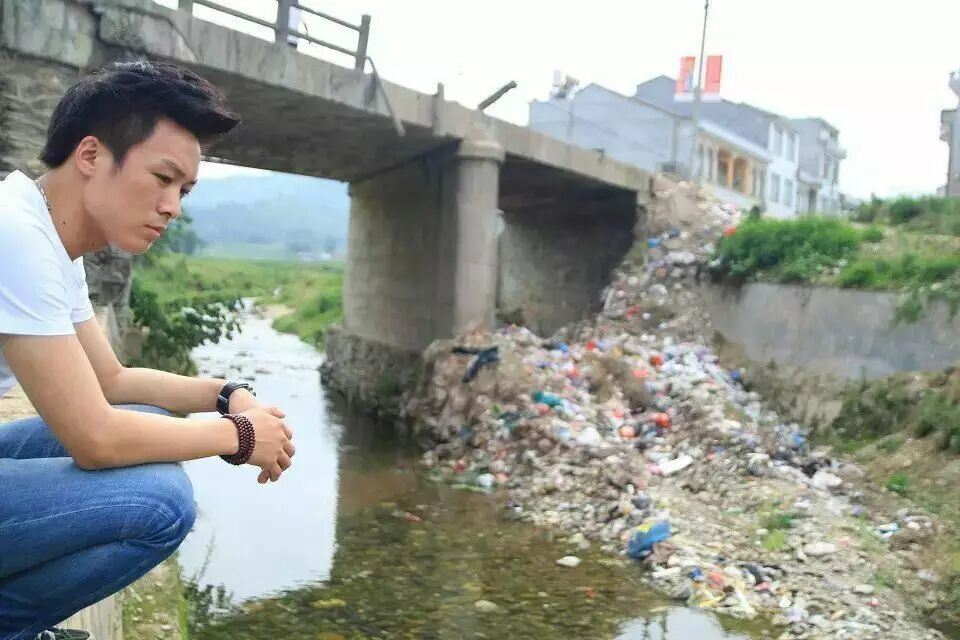 民间河长欧文在村头河道旁深思