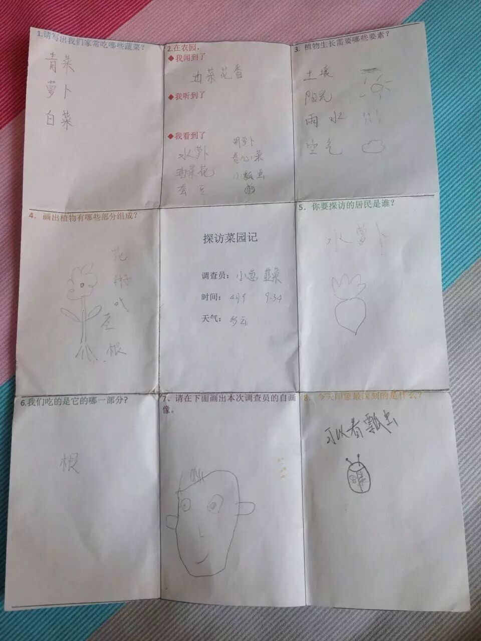 小朋友认真完成的任务书,记录下活动的精彩!