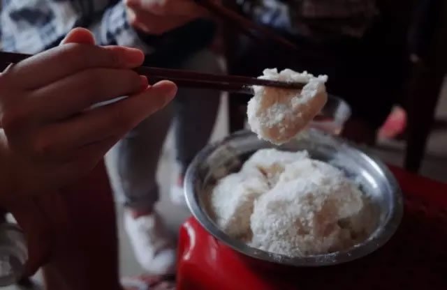 一开始我们不好意思吃时,坐在后面的奶奶突然站起来,先是用手不断拍拍我们肩膀,然后指着糯米糍粑,似乎在告诉我们“快吃,不吃就凉了。”