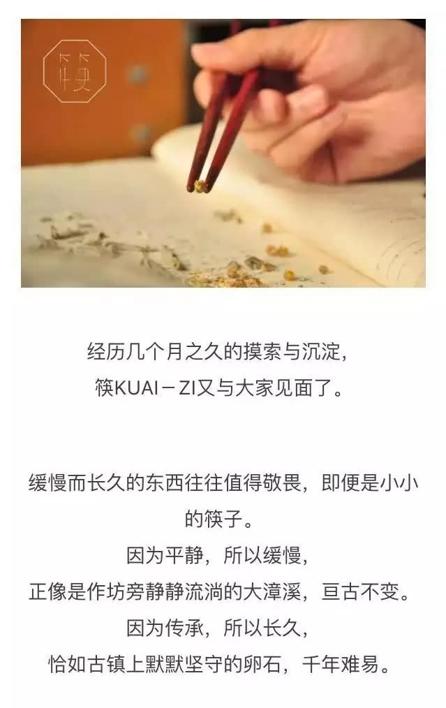今年4月,中央美院的同学们来到嵩口,在体验了木筷的制作工艺后,深深被其独特的创作魅力吸引,不但亲手制作了数十双筷子带回北京,还建立专门的微信公众号。