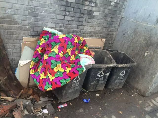 这张照片是peeling king团队摄于天安门附近的一条胡同,人们只是把垃圾堆在胡同的一个角落,并不分类,只是等着垃圾车把垃圾拖走。到了夏天的时候,堆垃圾的地方经常臭味弥漫,蚊虫飞舞。很多同学上学的必经之路就要经过堆放垃圾的地方,每次经过那里都要捂住口鼻才能经过。