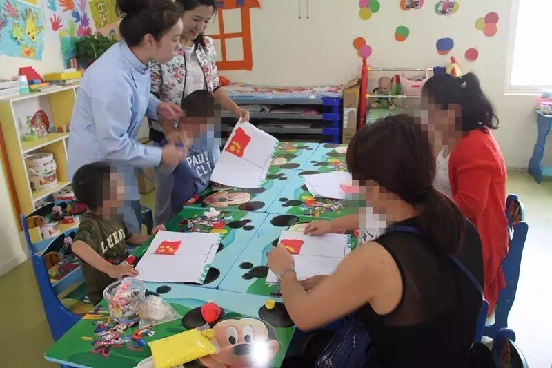 9月22日,乐恩学堂的小朋友和家长共同开展了一次“我爱你,祖国”的综合教学活动。活动过程中,孩子们和家长首先通过观看视频《开国大典》了解了我们的祖国,认识国旗、国徽等。在美工制作《五星红旗》中,家长和孩子们共同动手制作红旗,从而发展了孩子们的动手能力及亲子关系。