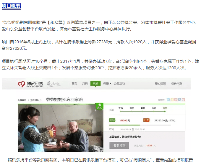 “爷爷奶奶别忘回家路”结项公示|【和众筹】