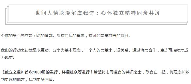 独立出版使得书中可以没有一字删减的呈现完整内容。