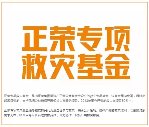 社会各界爱心机构、企业和人士,如有需要,也可以通过正荣专项救灾基金这一专业服务平台,传递爱心,支援前线。