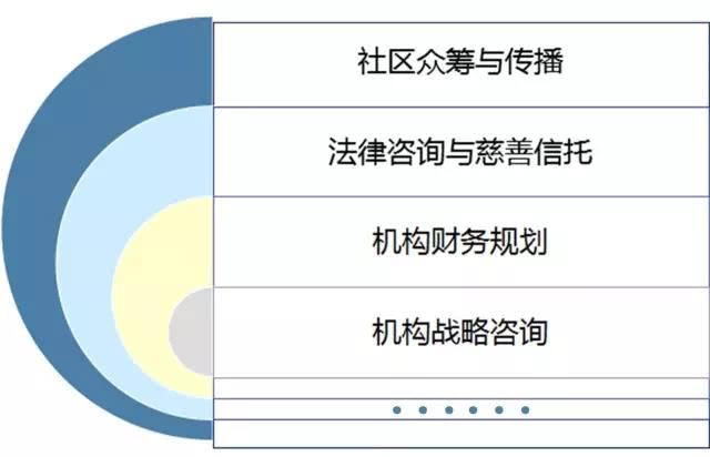 包括:机构战略规划、组织结构优化、品牌推广、项目可行性分析、公共关系、人力资源、社区公共资源动员等