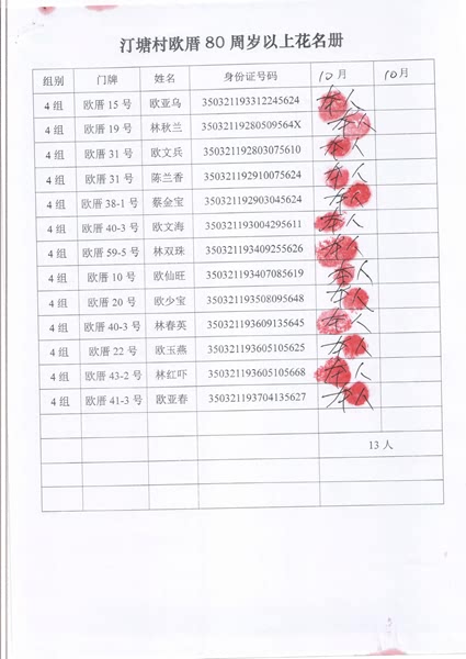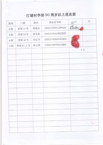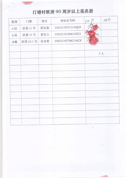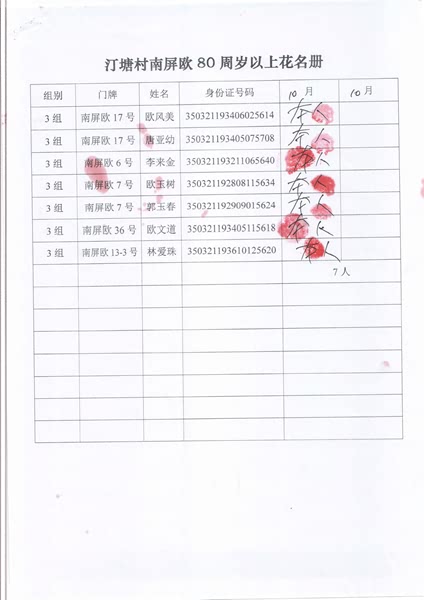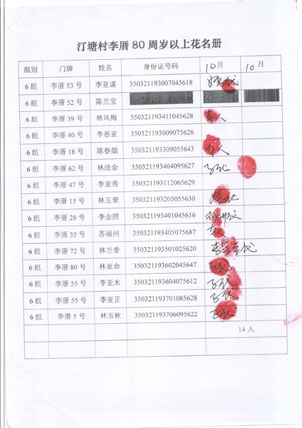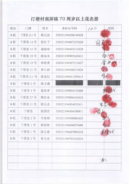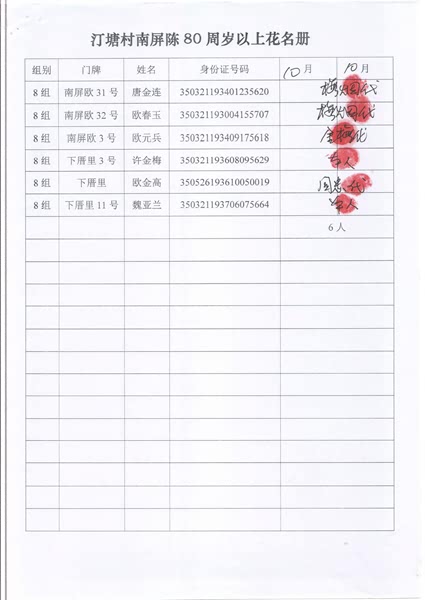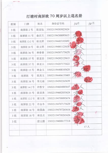 2017年10月福寿金发放情况如下。