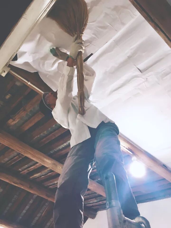 于伯公在修缮图书馆屋顶