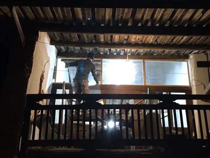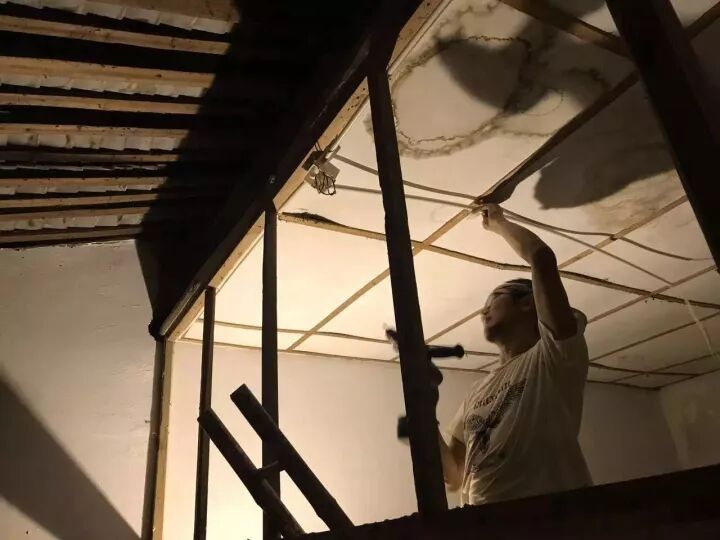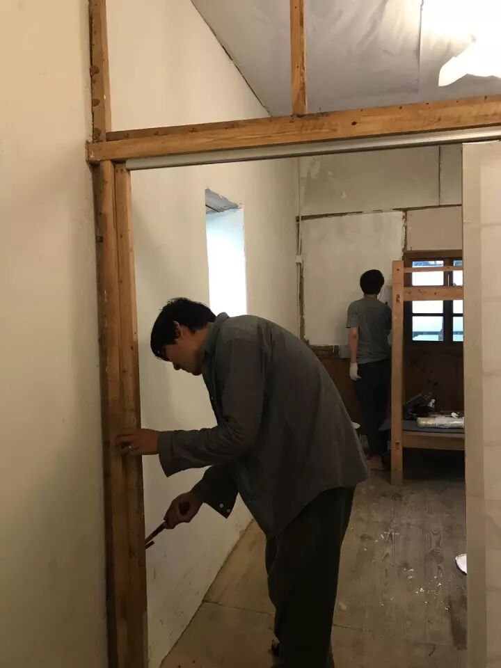 南部生活共识社区发起人唐冠华在为图书馆住宿空间进行改造