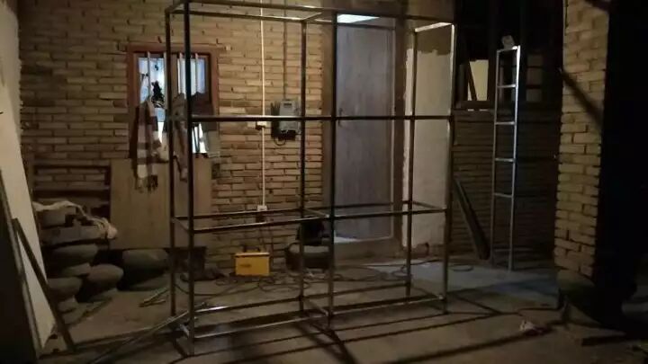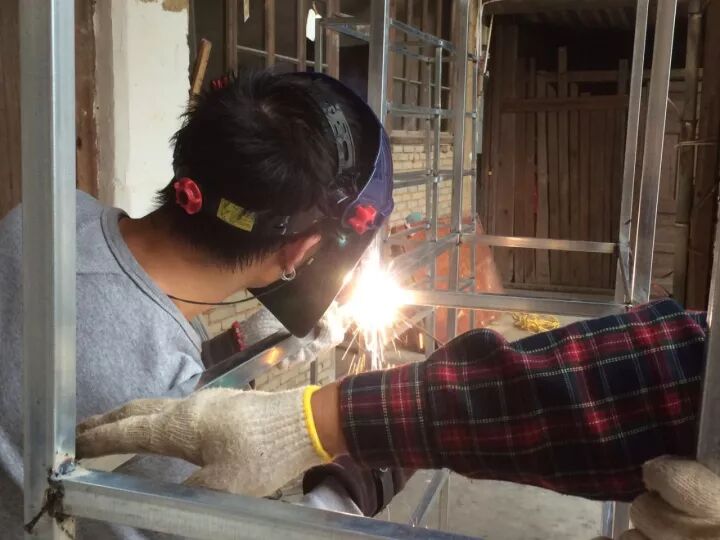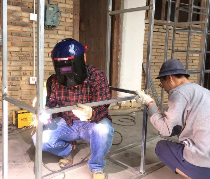 实验电影导演、艺术家黄金在进行书架焊接