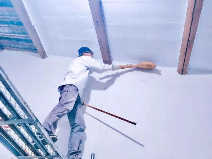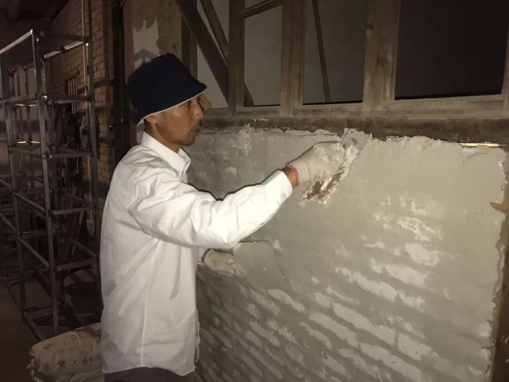艺术家、发现儿童图书馆发起人于伯公在修复图书馆墙体,2017年