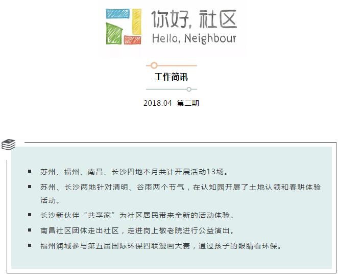 你好社区工作简报 | 第二期 2018年4月