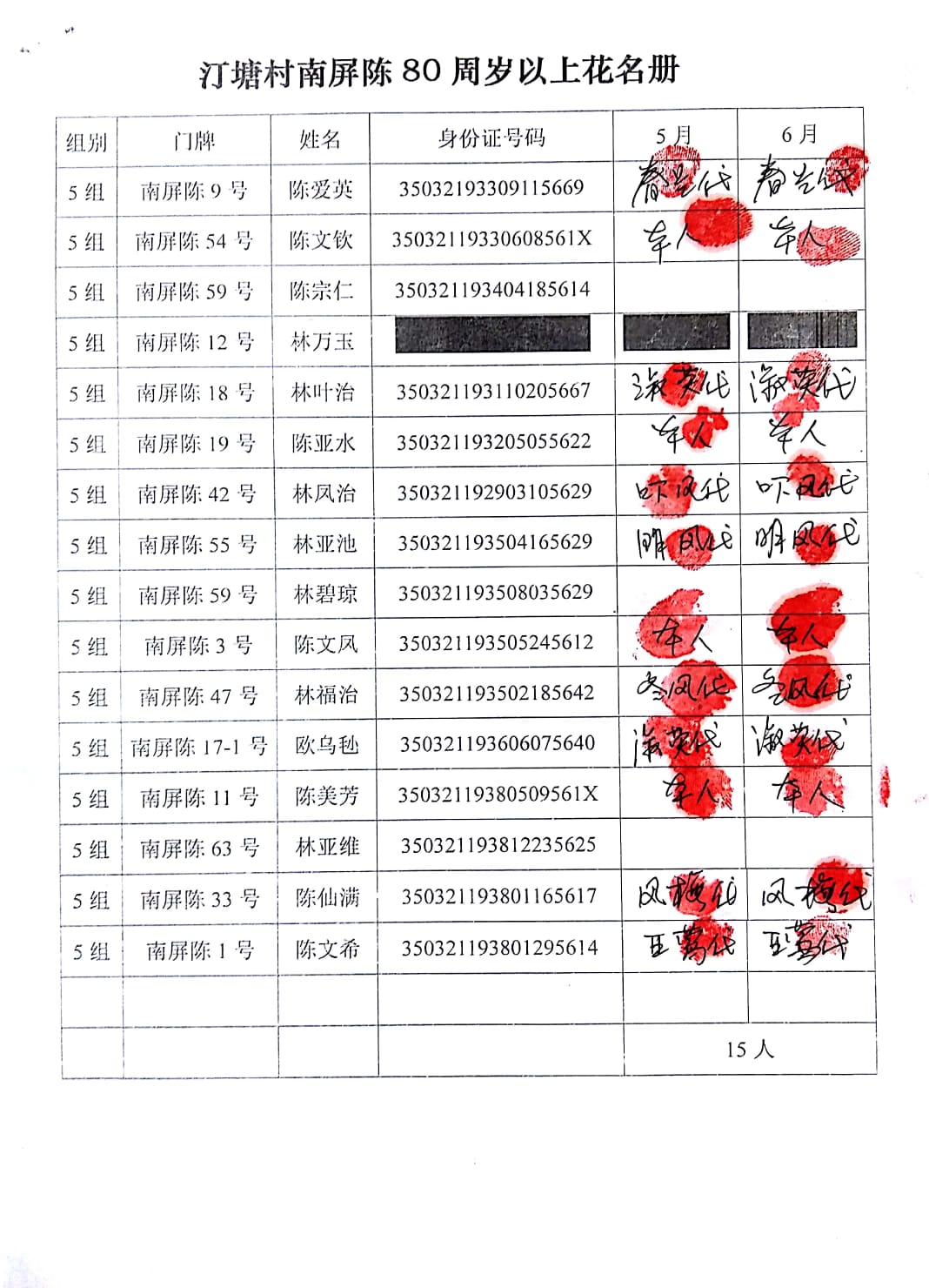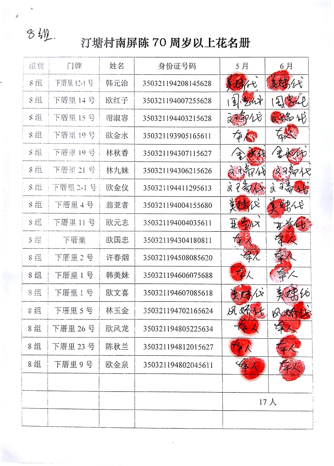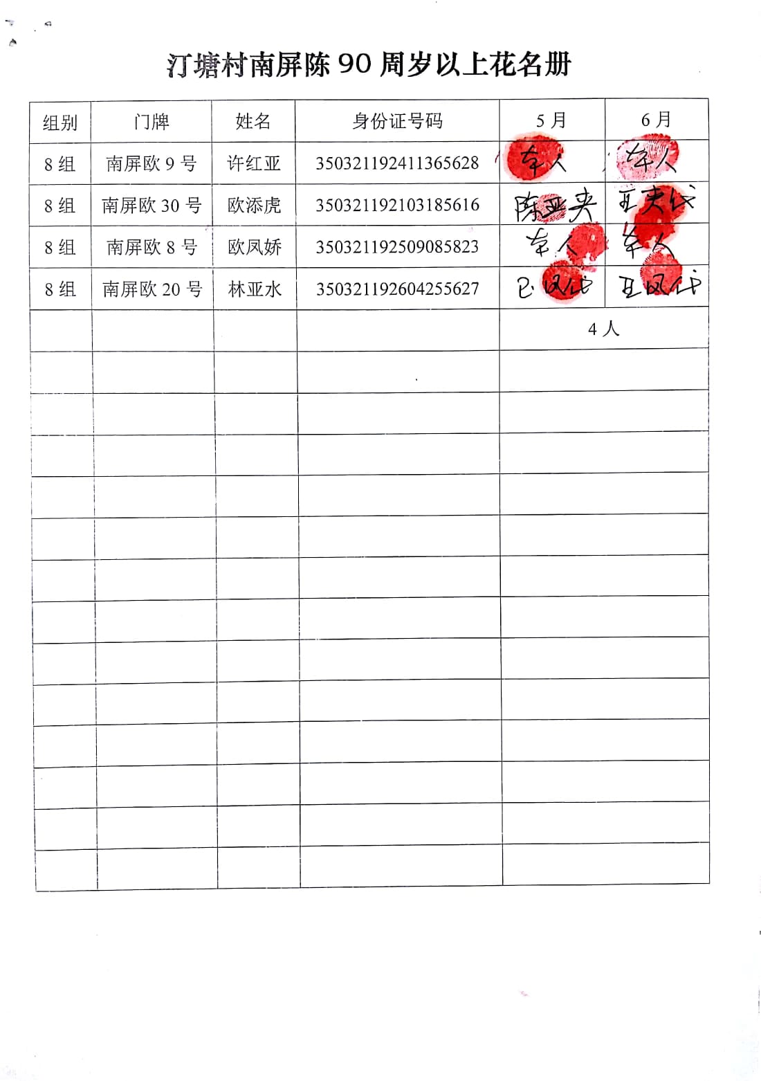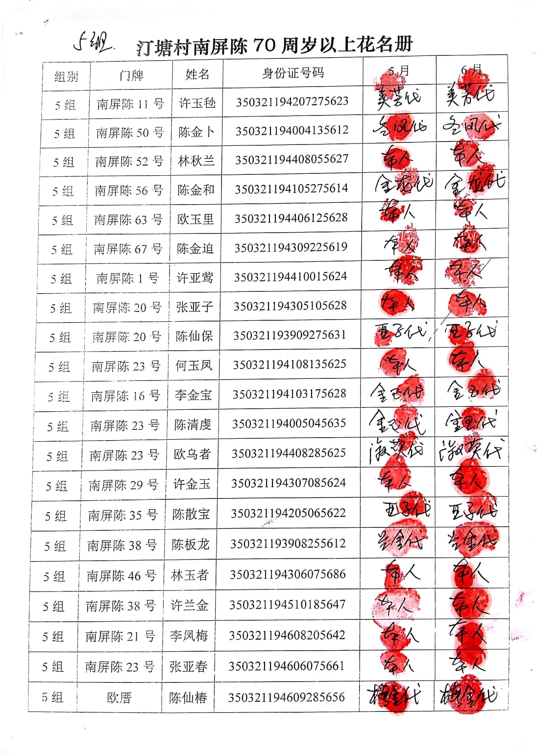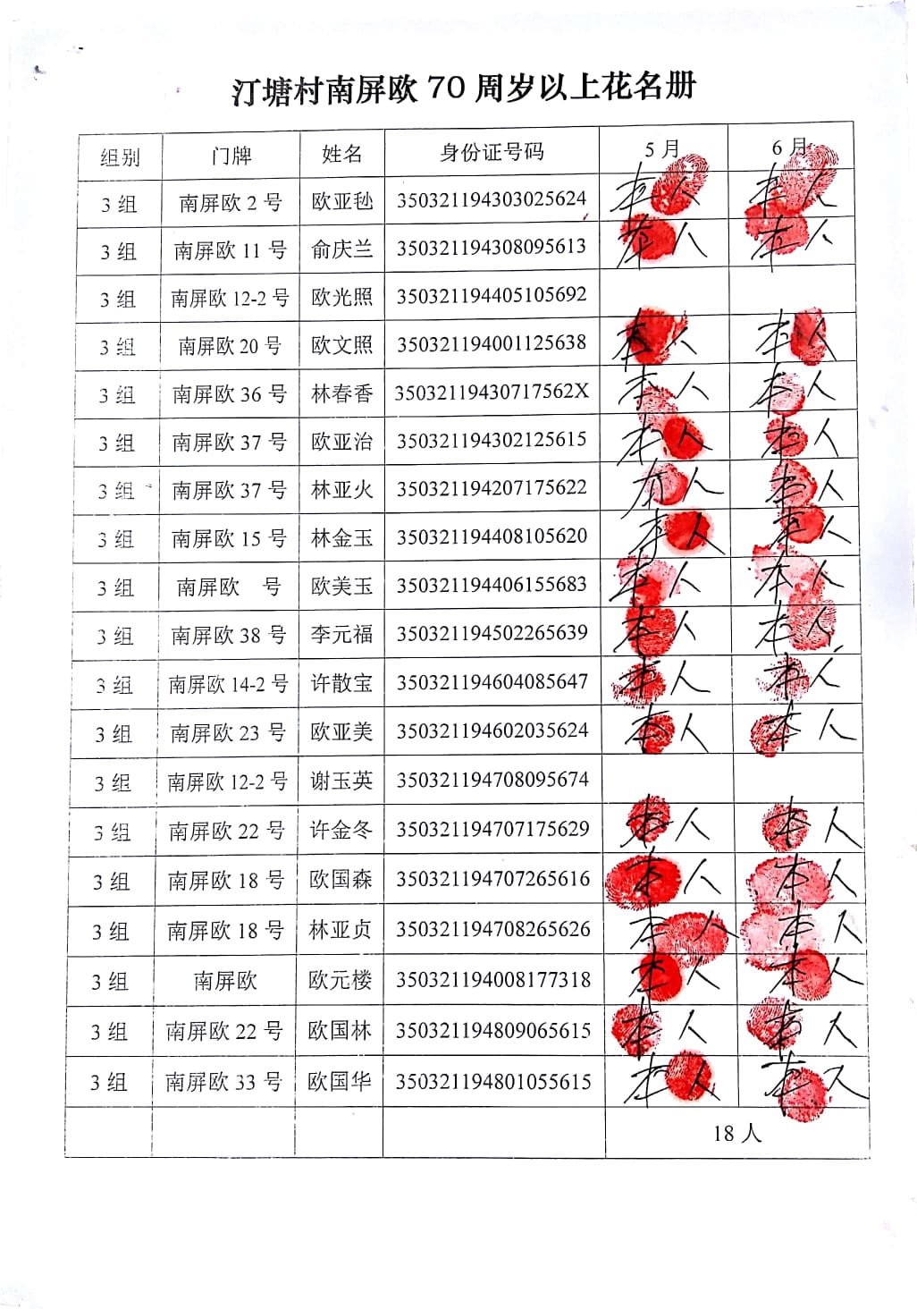 正荣福寿金自2014年设立,2018年5-6月,每月为汀塘村70周岁以上的老人发放400-1000元不等礼金(70-79岁老人,一个月400元;80-89岁老人,一个月600元;90-99岁老人,一个月700元;100岁及以上,一个月1000元。)