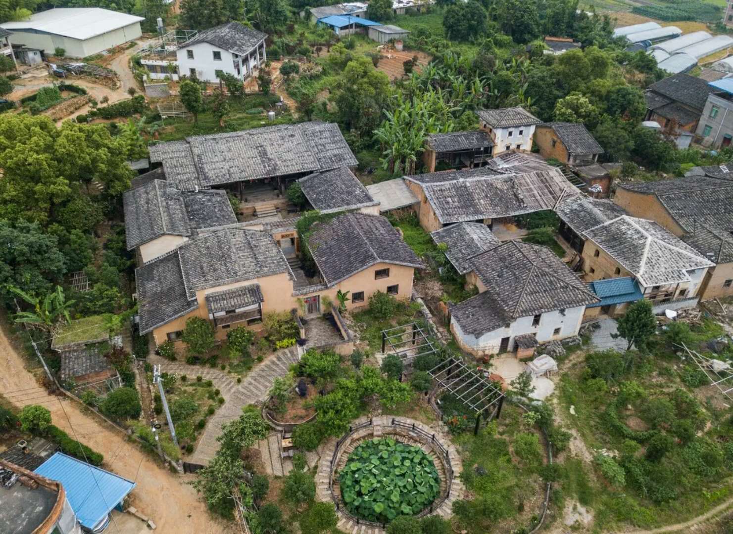 从福州市区前往南部生活共识社区所在的关中村故乡农园只有四十多分钟的车程。车子一进村,就看见许多新建的砖房,墙面还未粉刷和贴砖,径直向外敞露,呈现出未完成的状态。五月的福州,天早早就热起来了,整个村庄看起来恹恹的,几乎没有看到什么人。