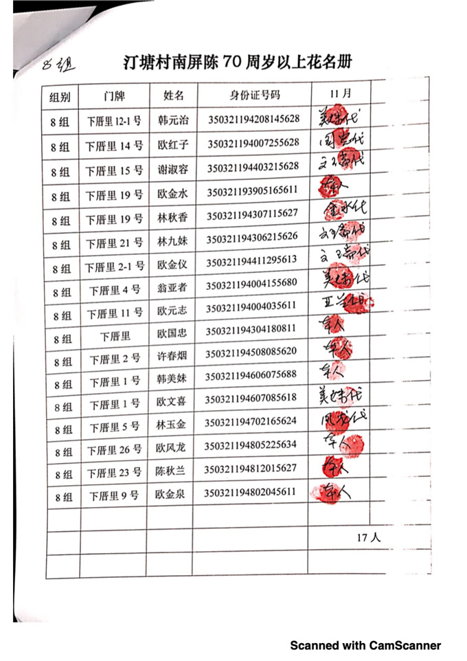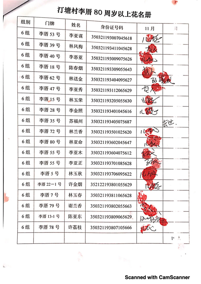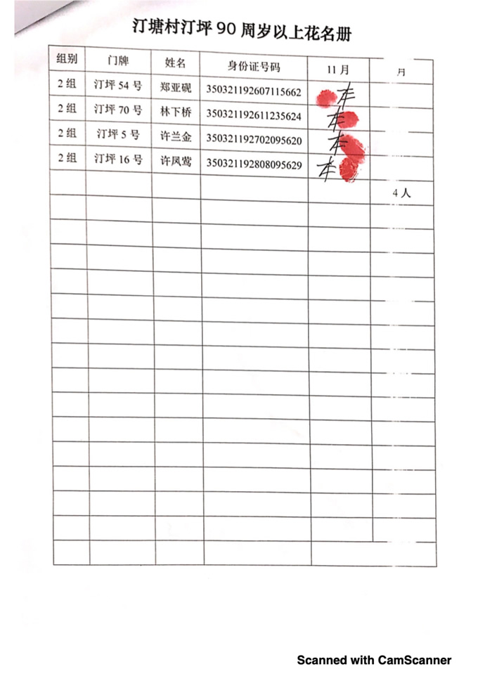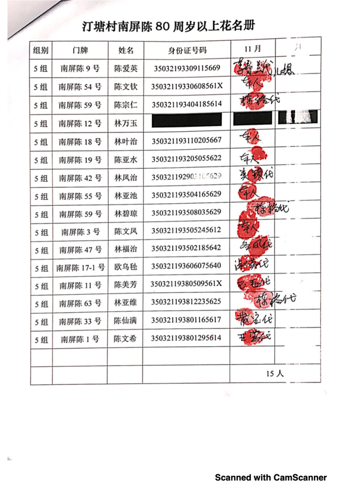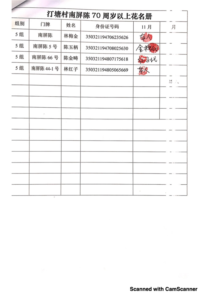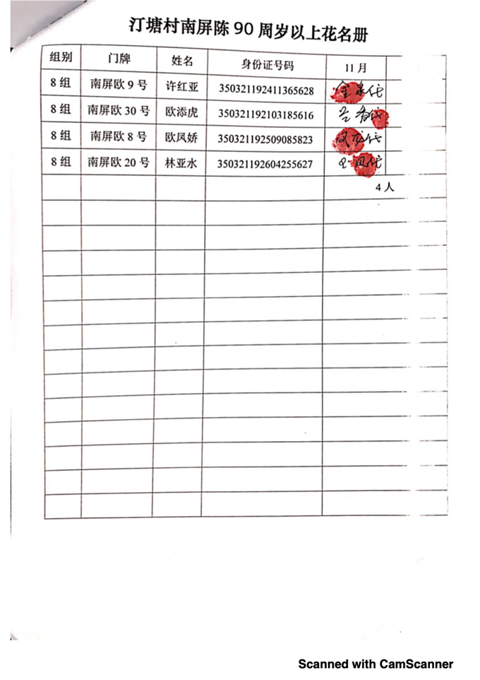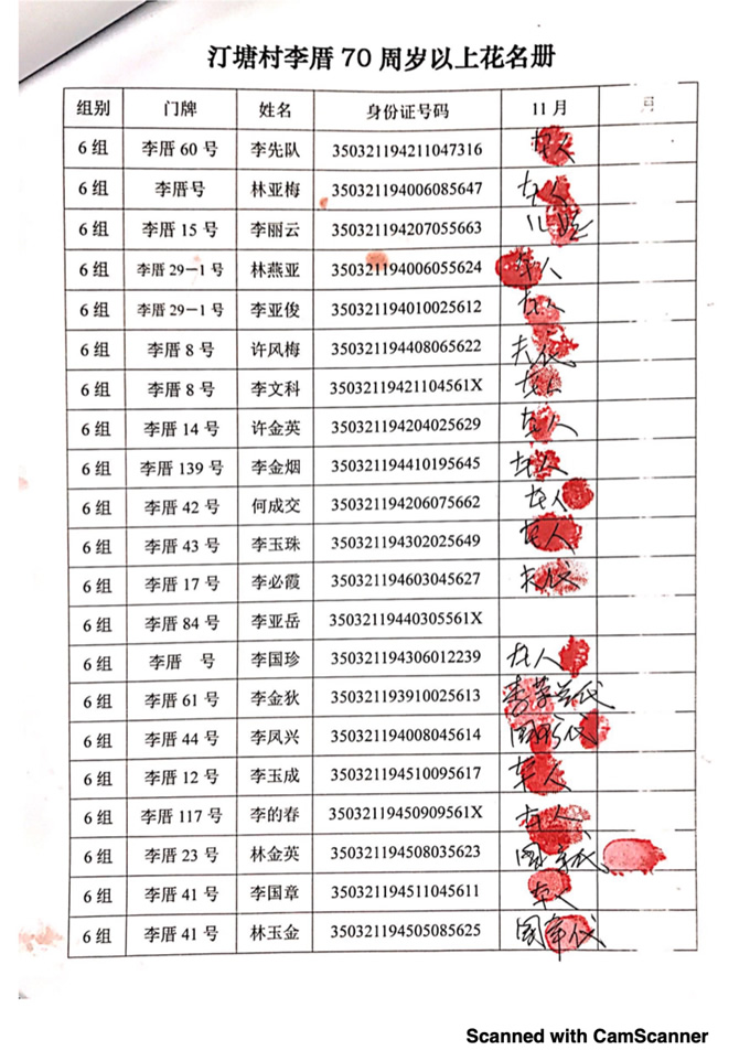2018年11月,项目为汀塘村70周岁以上的老人发放400-1000元不等礼金(70-79岁老人,一个月400元;80-89岁老人,一个月600元;90-99岁老人,一个月700元;100岁及以上,一个月1000元。)