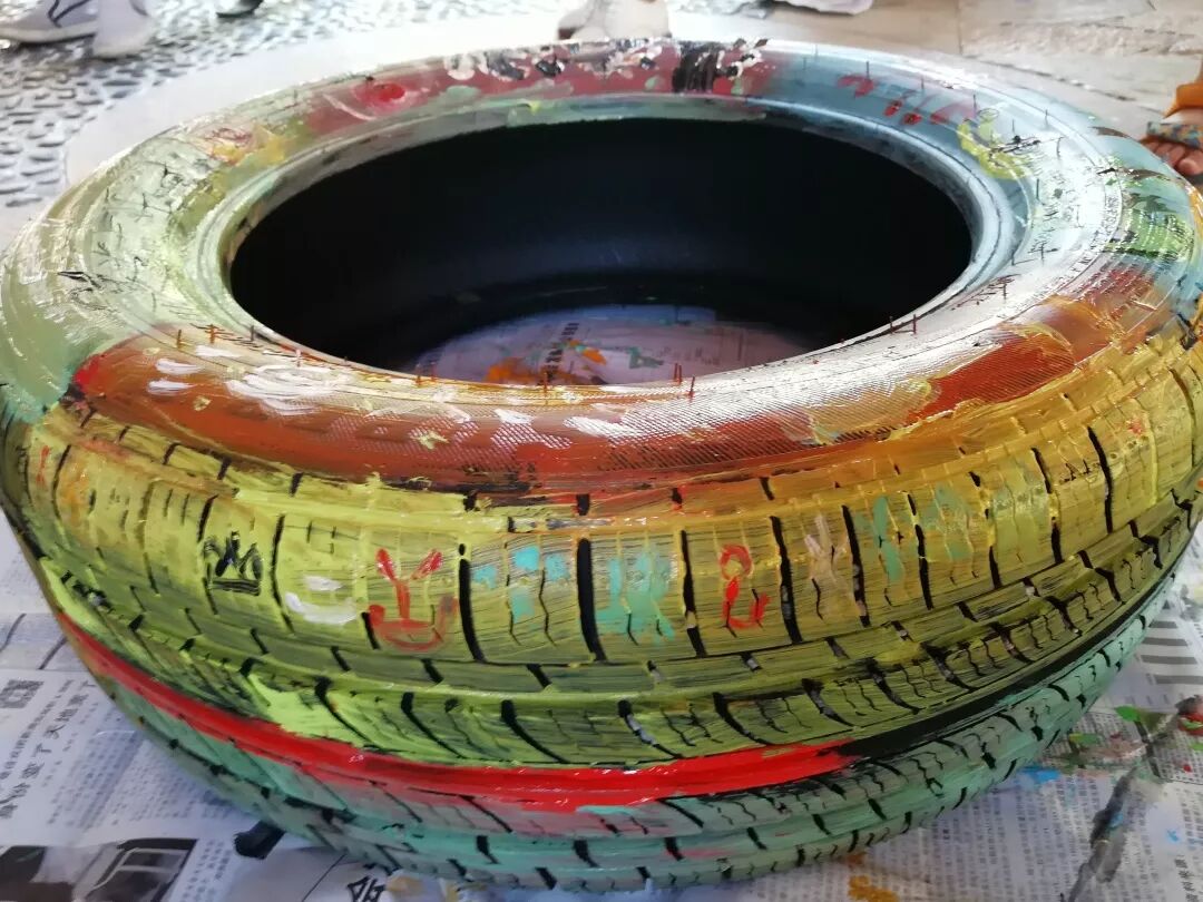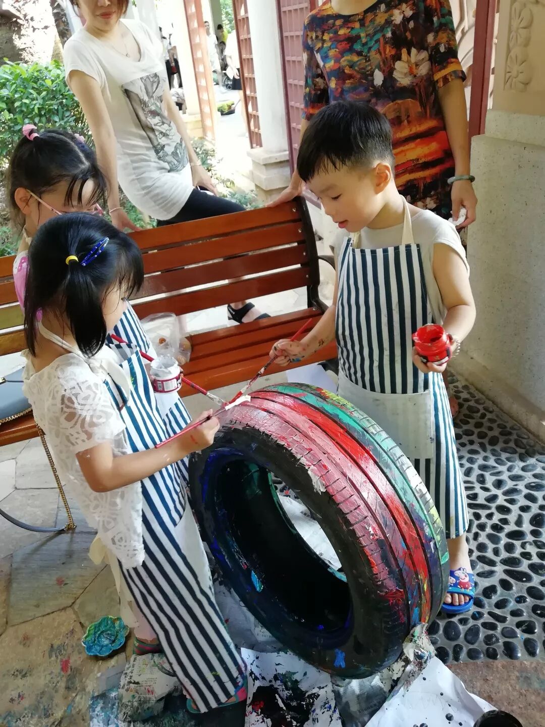 8月4日,在正荣润城社区凉亭里,22名社区的小小少年化身为“不修边幅的真汉子和萌妹子”。他们握紧着手中的画笔,发挥着天马行空的想象,在小小的轮胎里放飞自己大大的梦想。当废弃的轮胎遇见“脑洞大开”,擦出了不一样的火花。