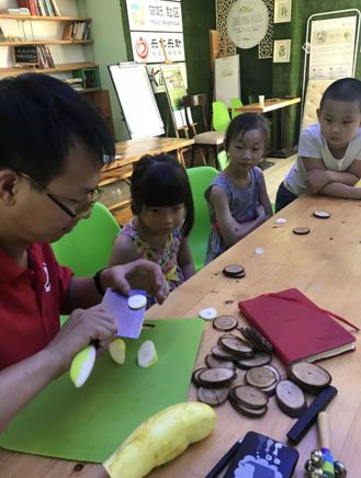 8月11日下午14:00,乐助社工带领正荣的业主在正荣书院开展了自然教育的首次课程。通过新的自己——自然名,遵守自然规则,认识植物生长,了解年轮的形成和意义,最后在活动结束后,参加活动的儿童做了志愿活动。