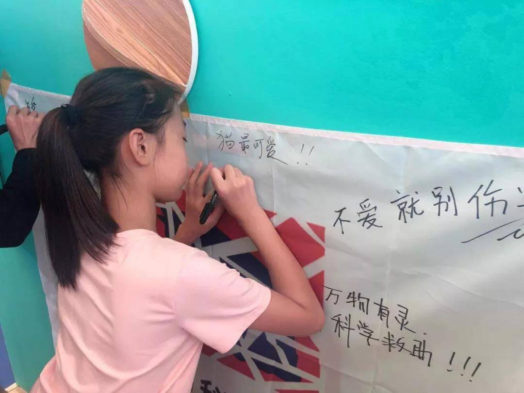 被流浪猫的故事吸引过来签名支持的9岁小朋友