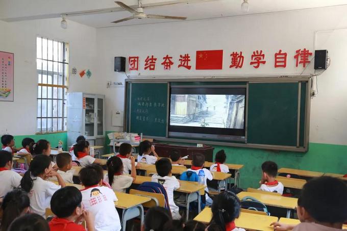 中午,志愿者们在学校五个教室进行了爱国主义动画片电影《闪闪的红星》的放映,同时利用空余时间对汀塘小学正荣楼的修缮情况做了调研。
