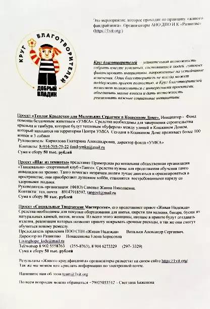 当天来展示的三个项目分别是动物保护项目、盲人舞蹈教育项目和贫困女性赋能项目,目标筹款额都是50000卢布(约5000人民币):