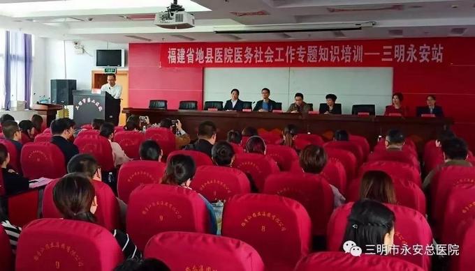 11月22日,由福建省社会工作联合会医务社工专委会主办,三明市永安总医院承办的福建省县级医院医务社会工作专题知识培训班在三明市永安总医院开班。来自南平、晋江、三明地区各县市医疗单位相关人员、永安市社会工作师近100人参加培训。