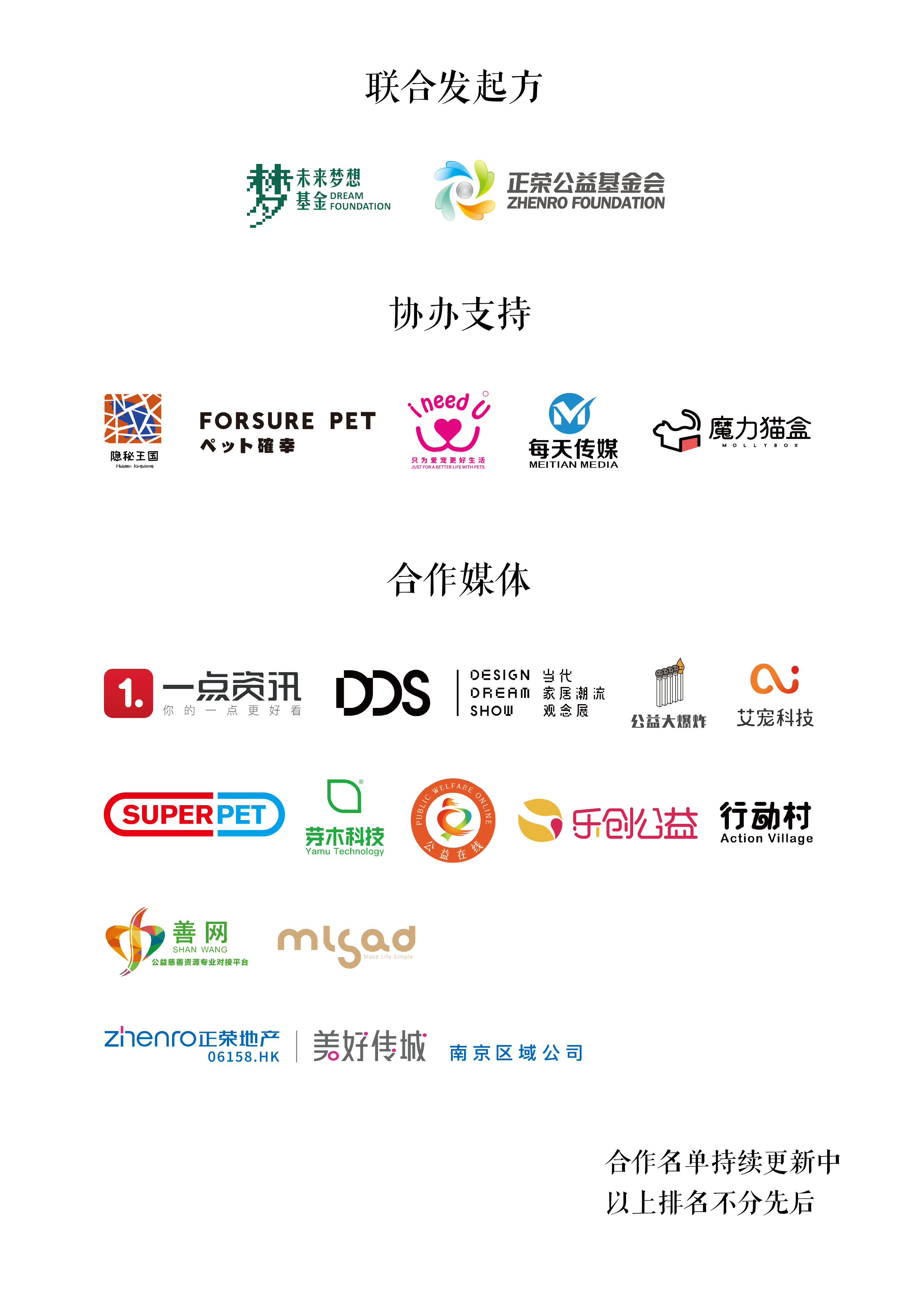 1、每收到一个有效作品,正荣公益基金会、上海市未来梦想公益基金会将联合公益伙伴宠确幸、ineedu、隐秘王国捐出3斤的猫粮;每有2人参与,便在原有物资的基础上,再捐赠1袋猫砂及1粒驱虫药用于抵御猫咪冬天的饥饿与疾病。
