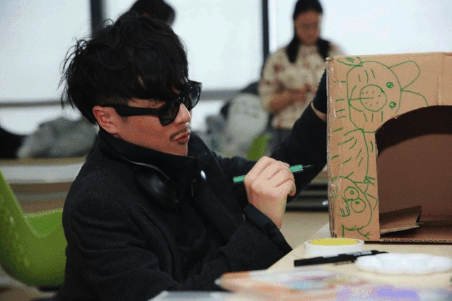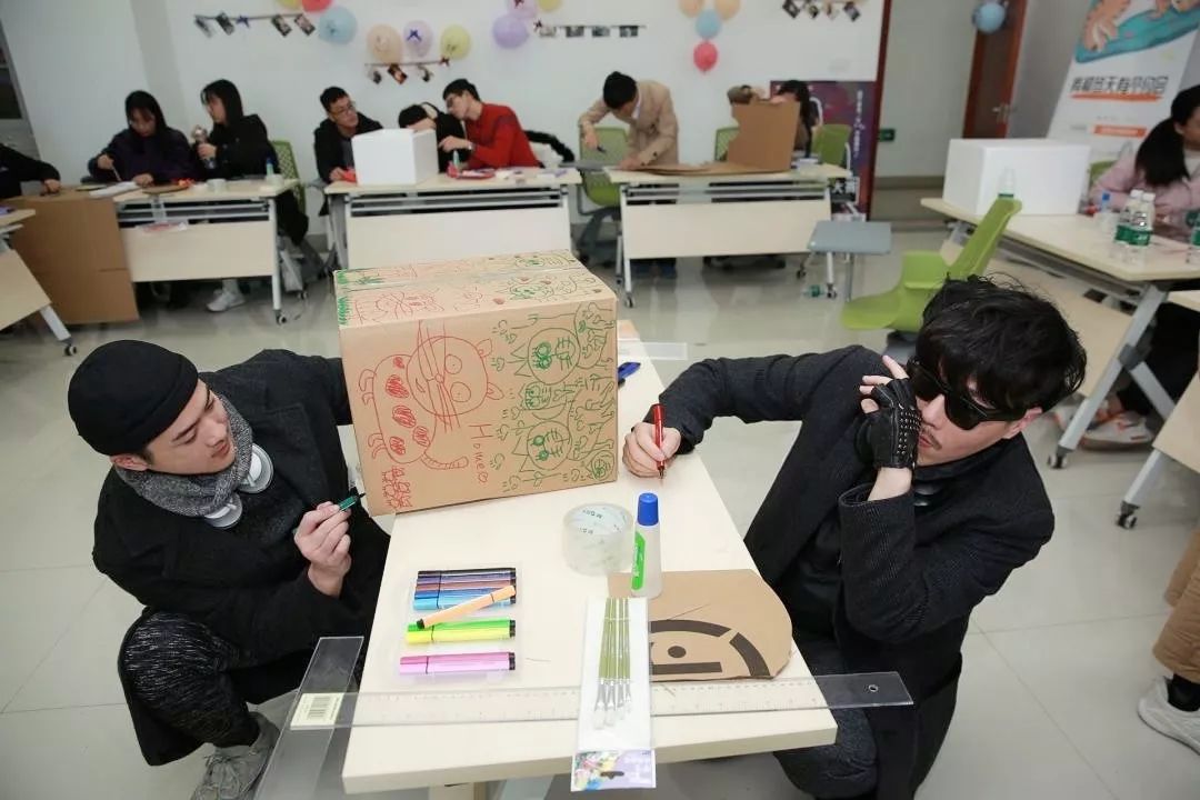范景翔、吕文彬与华东理工大学学生一起制作猫窝