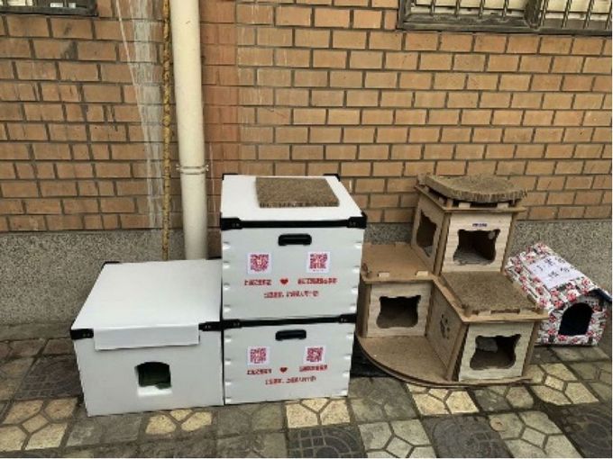 一天中猫有三分之二的时间都处在睡眠状态,给猫猫一个舒适稳定的小窝能更让它形成稳定的性格,与人和环境更好的互动。流浪星人有比较强的领地意识,也更喜欢在隐蔽的地方活动,所以冬天的毛孩们更希望有个温暖独立避风挡雨的小窝抵抗寒冷。流浪猫们数量较为庞大,社区群护人员与爱心人士人数相对较少,在设计中不仅需要注重流浪猫们的只数和舒适程度,也要注重人群护、喂养的便捷程度哦。