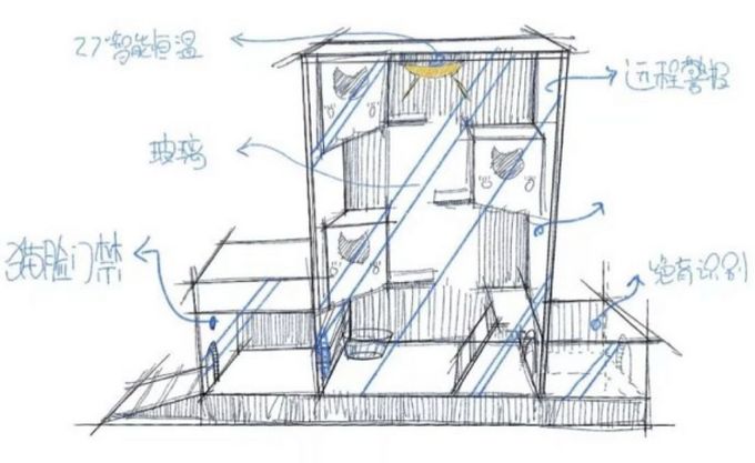 AI智能猫窝运用了安装了猫脸门禁系统,用摄像头,通过利用AI 动物识别技术,准确识别174种不同种类的猫咪,当有猫咪出现时,猫窝的门自动打开。同时猫窝还有病猫、绝育识别的功能。利用定制化训练和服务平台EasyDL,通过训练后的系统可以在300毫秒内判断猫咪有没有生病,能识别猫口炎、猫鼻支、猫皮肤病、猫外伤4种常见猫病。同时,通过看耳标还能够分辨猫咪是否已经绝育。当发现生病的猫或者未绝育的猫,系统会自动向附起近区域志愿者推送通知,让生病的猫咪及时得到救助,让没有绝育的猫被记录下来并被带去绝育。除此之外,黑科技的猫窝还有智能设置温湿度的功能。内里的新风系统会实时监测和分析猫窝内的氧气、二氧化碳等气体浓度,时刻保持猫窝室内的空气清新。