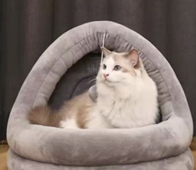 冬天的猫咪更喜欢温暖有安全感的小窝。棉质的猫窝也是不错的选择,也许刚好对的上猫猫的胃口