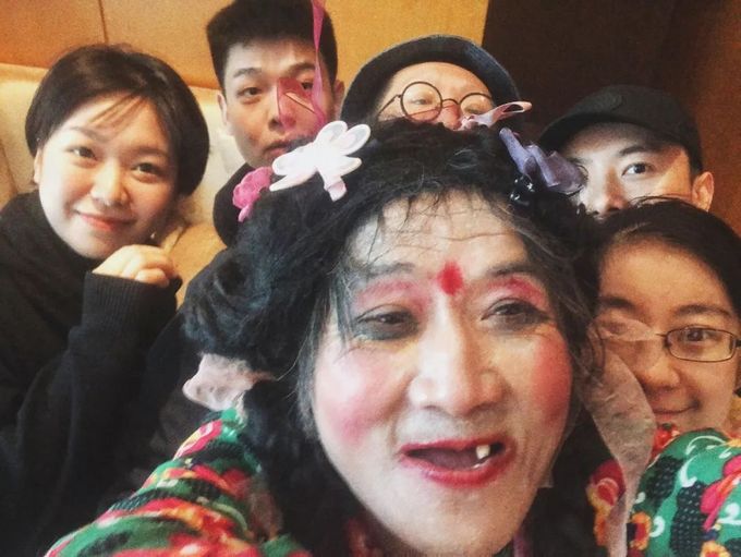 喜公益发起人刘培麟自拍,与前来探访的几位朋友和腾讯视频导演合影。(摄影/刘培麟)